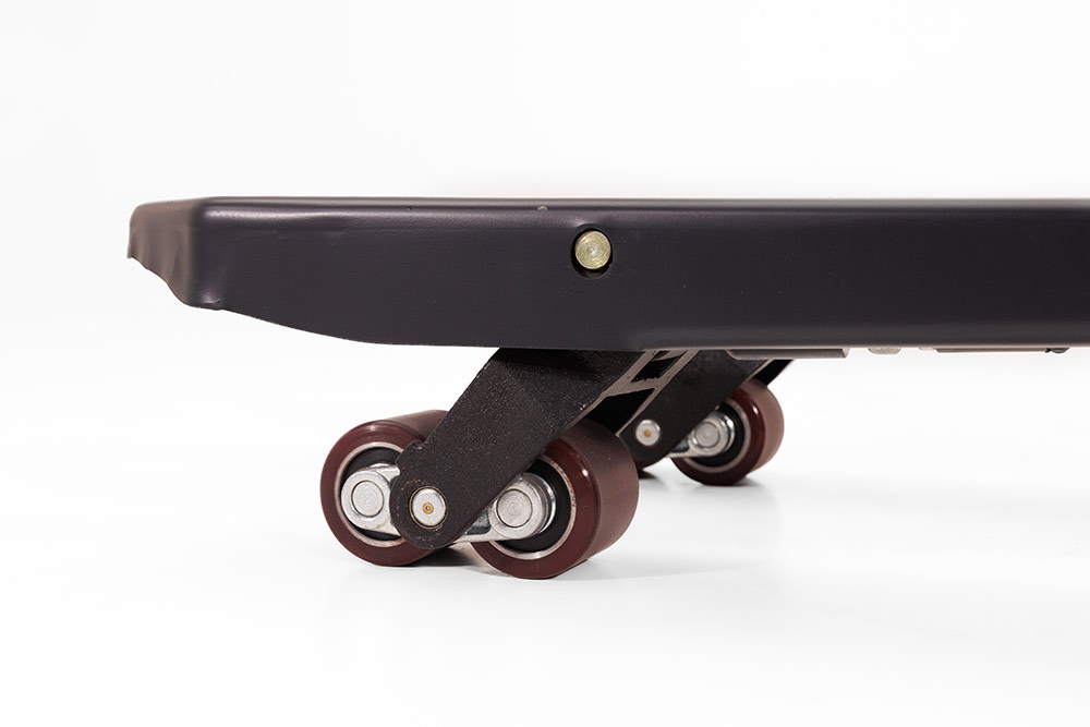 Le chariot est équipé de série de roulettes stabilisatrices latérales assurant une bonne stabilité et une conduite fluide. Ces roulettes disposent d’une suspension réglable permettant au technicien d’adapter le chariot aux différentes conditions d’utilisation.